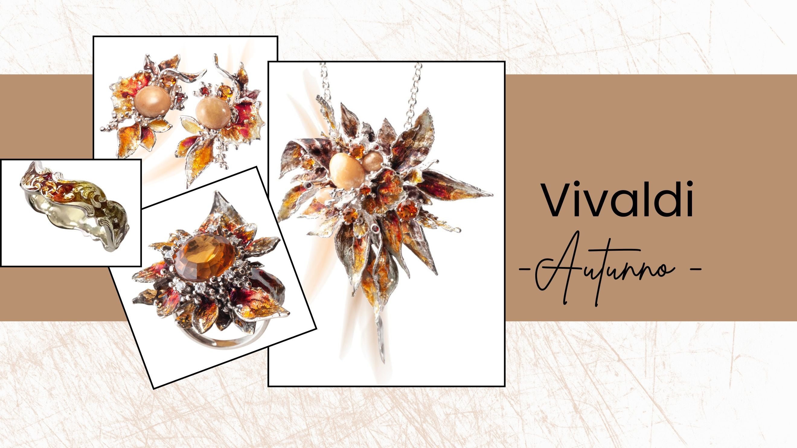 Vivaldi - eine in Schmuck umgesetzte Version der„Vier Jahreszeiten“ von Antonio Vivaldi. Ähnlich wie jedes Konzert dieses berühmten Werkes eine Jahreszeit porträtiert, symbolisiert diese