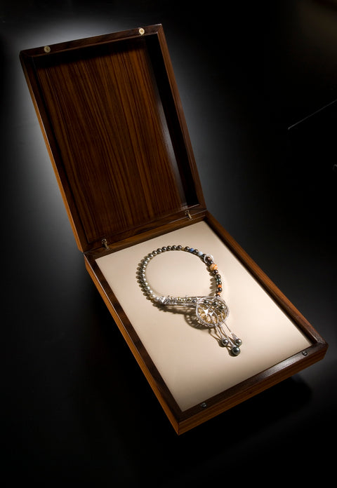 Ach, ich könnte Ihnen noch stundenlang von diesem fazinierendem Unikat berichten. Auf jeder Ausstellung begeisterten die vielen Hintergrundinformationen die Besucher. Gerne erzähle ich Ihnen ebenfalls meine Universo-Collier-Geschichte....