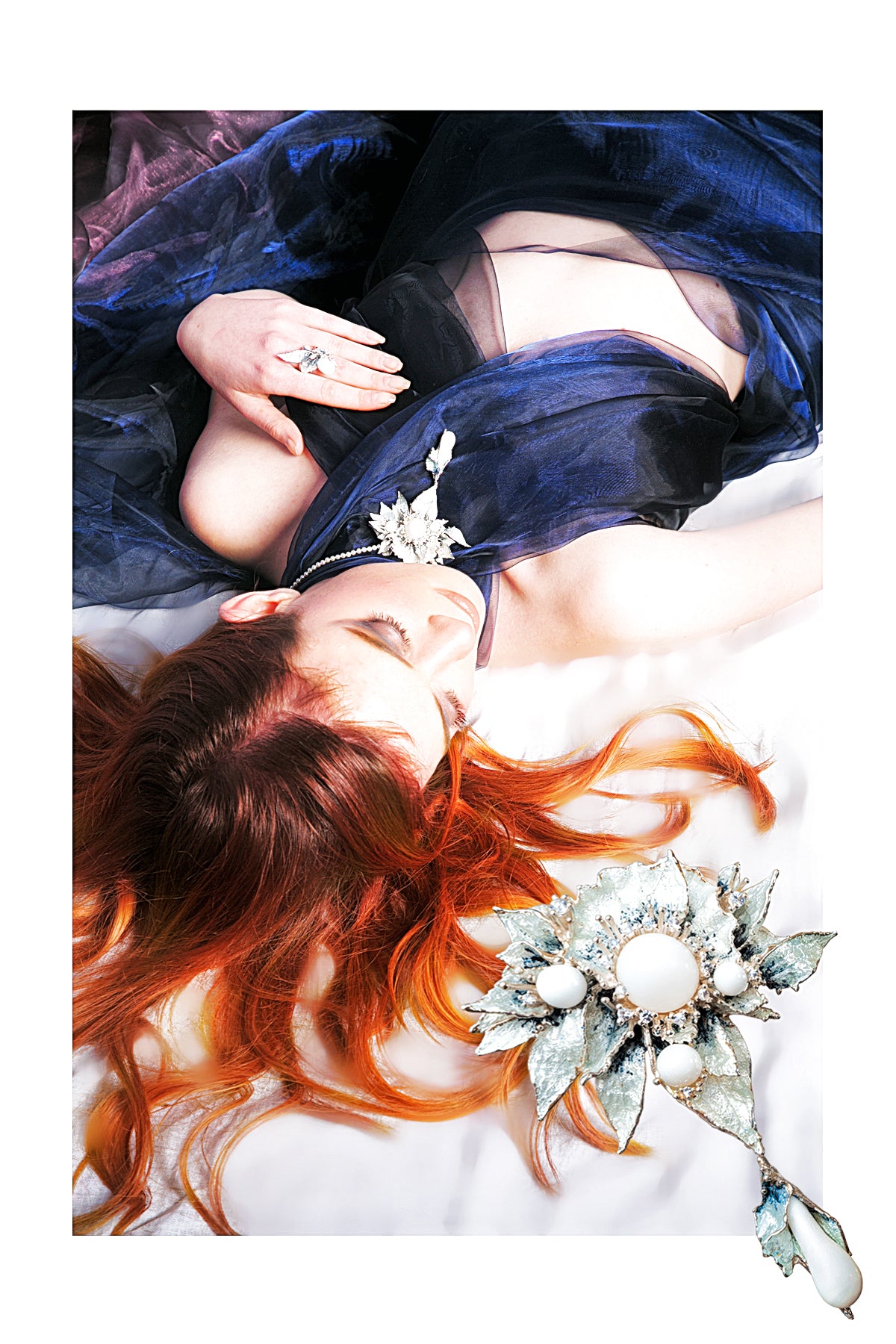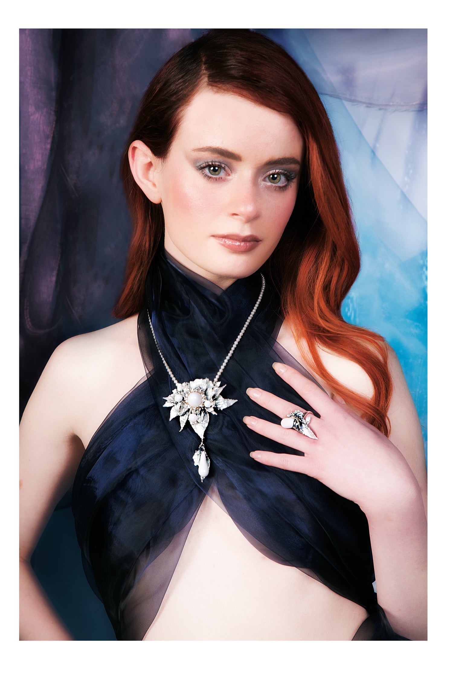 Der Winter in seiner vollen Schönheit mit klaren Farben, strahlendem Glanz und erfrischender Kälte schließt diese Serie ab. Hier finden weiße Clam-Perlen und funkelnde Saphire die perfekte Verwendung und erinnern an den ersten Schnee des Jahres.