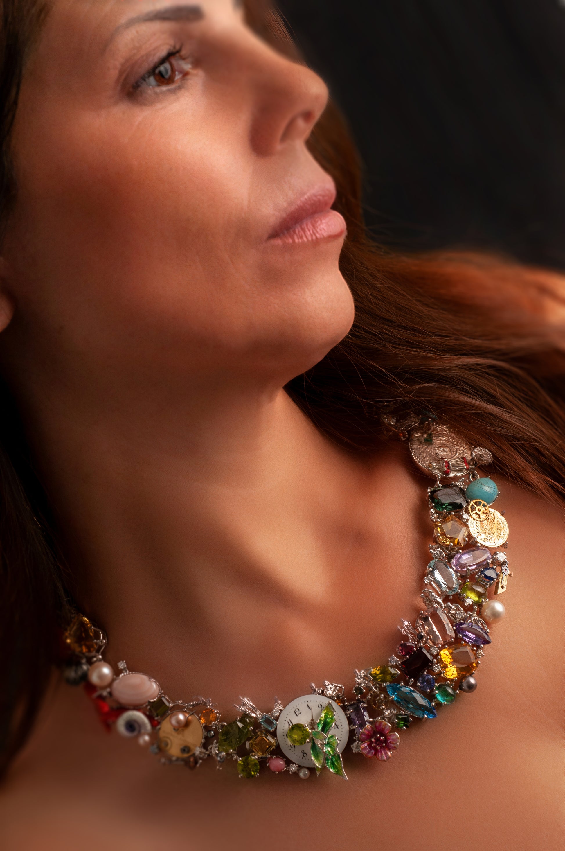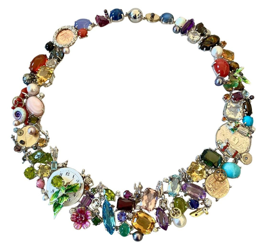 Untrennbar mit der Inhorgenta Munich verbunden ist ihr Werbeplakat: Unzählige Edelsteine, eine zerlegte Uhr – wie von Geisterhand in den Raum geworfen. Zum 50-jährigen Jubiläum meine Idee: diesen Geist in Schmuck zu verwandeln. Die Besucher kommen aus der ganzen Welt. Und deshalb dürfen sie hier auch nicht fehlen. 2023 habe ich MARE und VIVALDI zum ersten Mal ausgestellt. Es können auch Elemente gefunden werden.