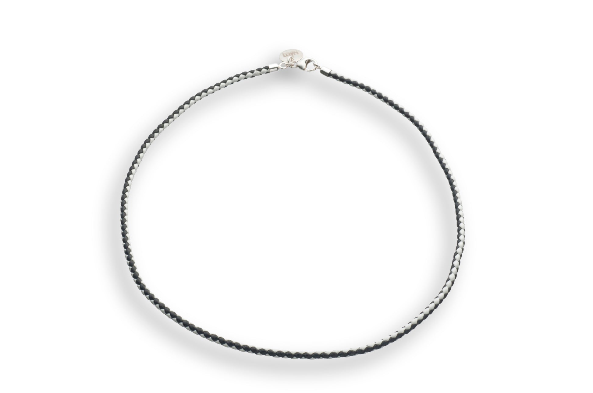 3 mm starkes, geflochtenes Leder-Armband in den Ulmer Farben, schwarz/weiß